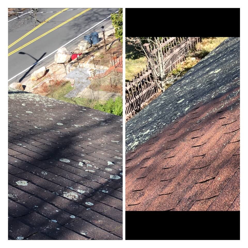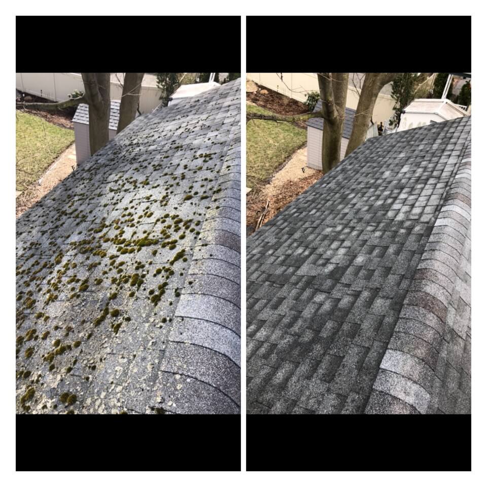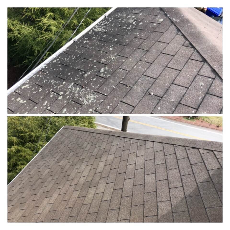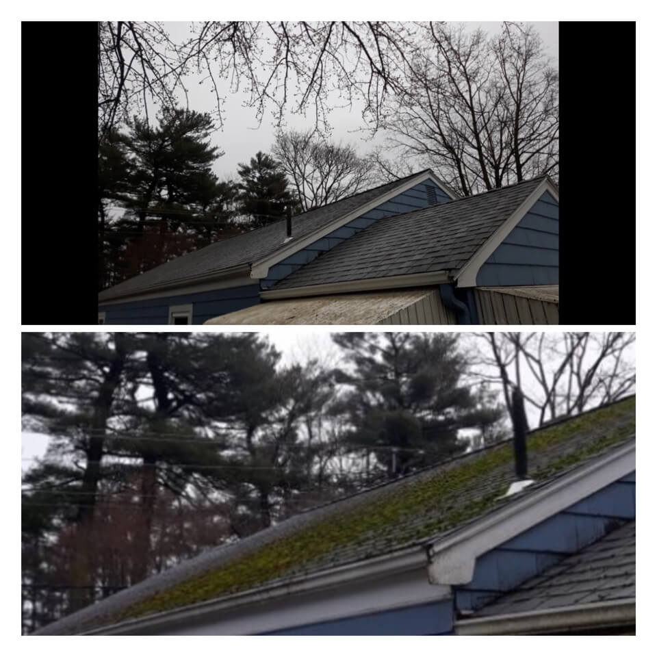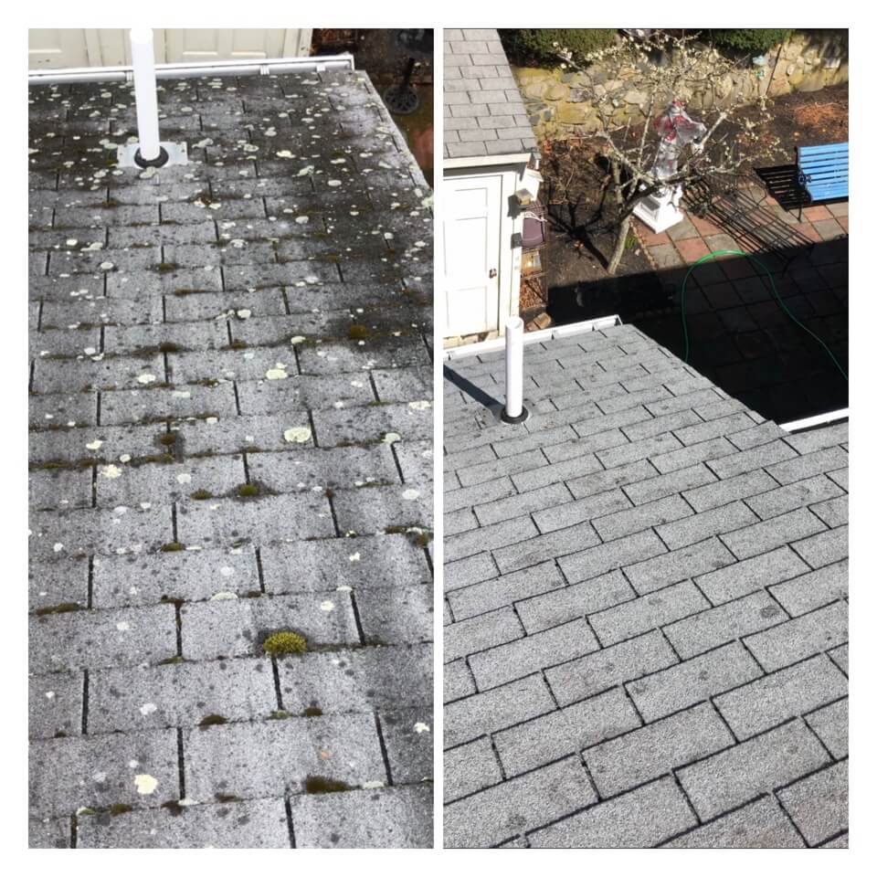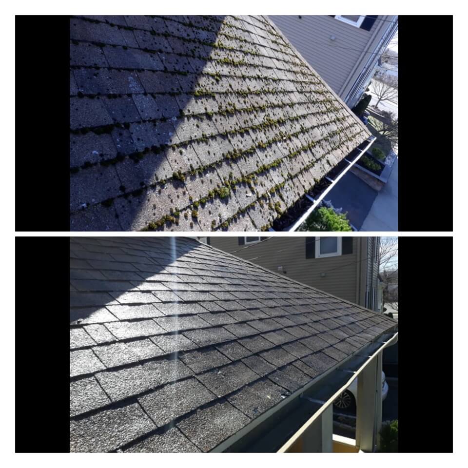 HiCleaners is the most experienced company in Stow, MA that deals with roof washing and roof soft washing. All of our employees are trained to recognize precise solution mixing ratios to provide you with the safest and most effective soft washing service. Roofs are a commonly neglected part of a house due to the fact that most people don’t have ladders to access it, so it is very easy to just leave it alone and forget about problems that may start to arise. Just like many home owners, discoloration and small bits of moss on a roof can be overlooked because of the misconception that it is just aesthetic. However, it isn’t just aesthetic, the moss slowly lifts the granules off the shingles which in turn shorten the life of the shingle. The moss also spreads, just like any bacteria if it is left alone for too long, it can quickly become a problem that spirals out of control. Call HiCleaners for a free quote, we only use the most advanced eco-friendly solutions and equipment to make sure the job is done right, for the safety of the employees, your plants, grass, pets, and children.